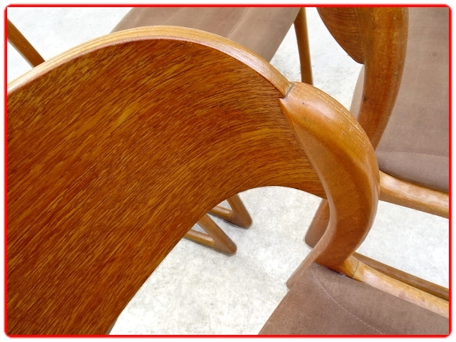 Le tissu a été nettoyé, à noter qu’il reste quelques traces d’usage normales, pas de déchirure, voir chaque assise 4 gros plans dernières photos. Chaises confortables et bien stables, le bois est en bel état avec vernis neuf aspect ciré.