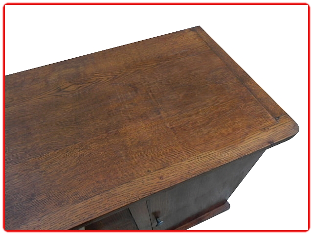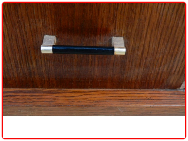 Meuble en chêne massif et bois contreplaqué, sans aggloméré, angles arrondis, pieds biseautés montés sur une structure bois, poignées bakélite … Lire la suite
