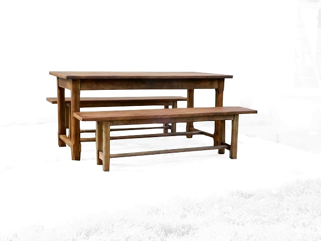 Description : table de ferme et ses 2 bancs