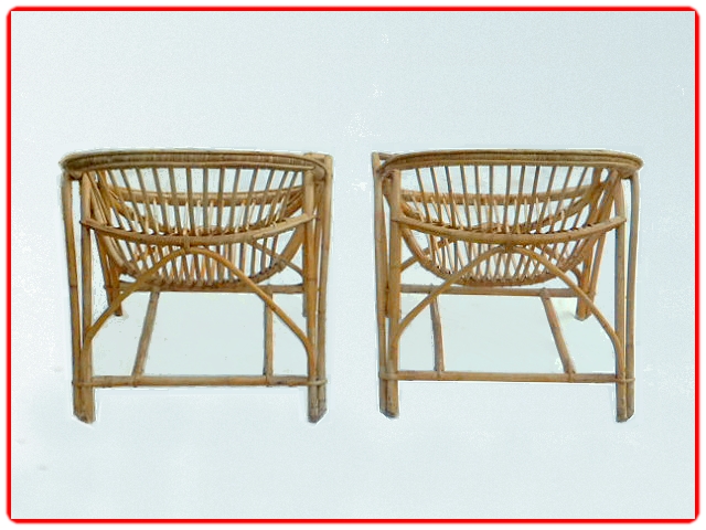 2 fauteuils en rotin anciens vintage des années 1960 avec assises larges, confortables et stables.