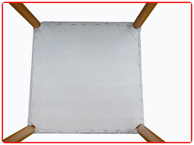 Ensemble de 6 chaises scandinave en teck rénovées. Elles sont légères, tout récemment restaurées, le tissu style Chanel tweed est 2 couleurs majoritairement crème et marron. L’assise est très confortable, sur sangles. La structure des chaises est en bois rond.Tissu de propreté de couleur crème.