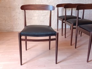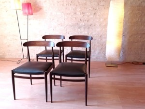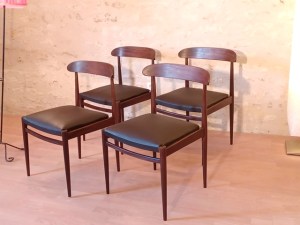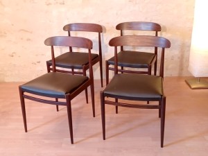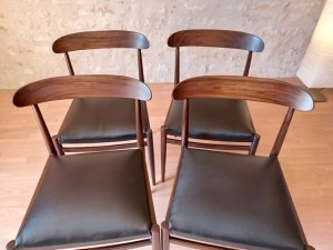 4 chaises en teck massif design scandinave des années vintage 1960. Pour ce modèle, on admire tout… Lire la suite