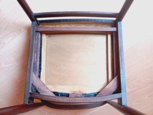 Dimensions : largeur 53 cm / profondeur 50 cm / hauteur d’assise 43 cm, dossier 80 cm