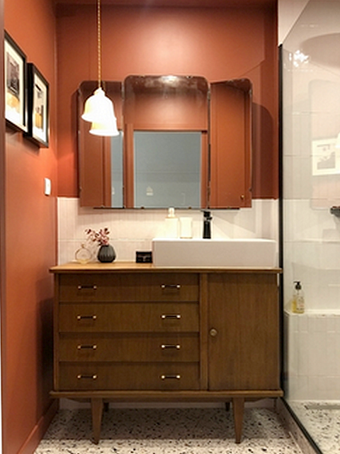 Voici comme promis quelques photos du meuble dans la salle de bains finalisée !
