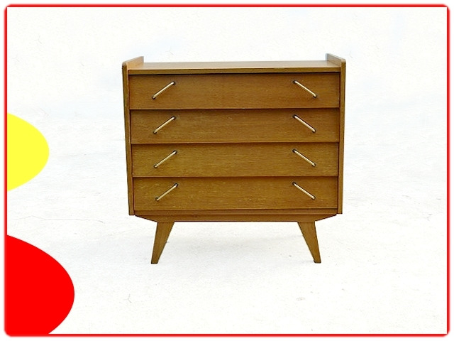 sur Commode vintage 4 tiroirs poignées inclinées 1960